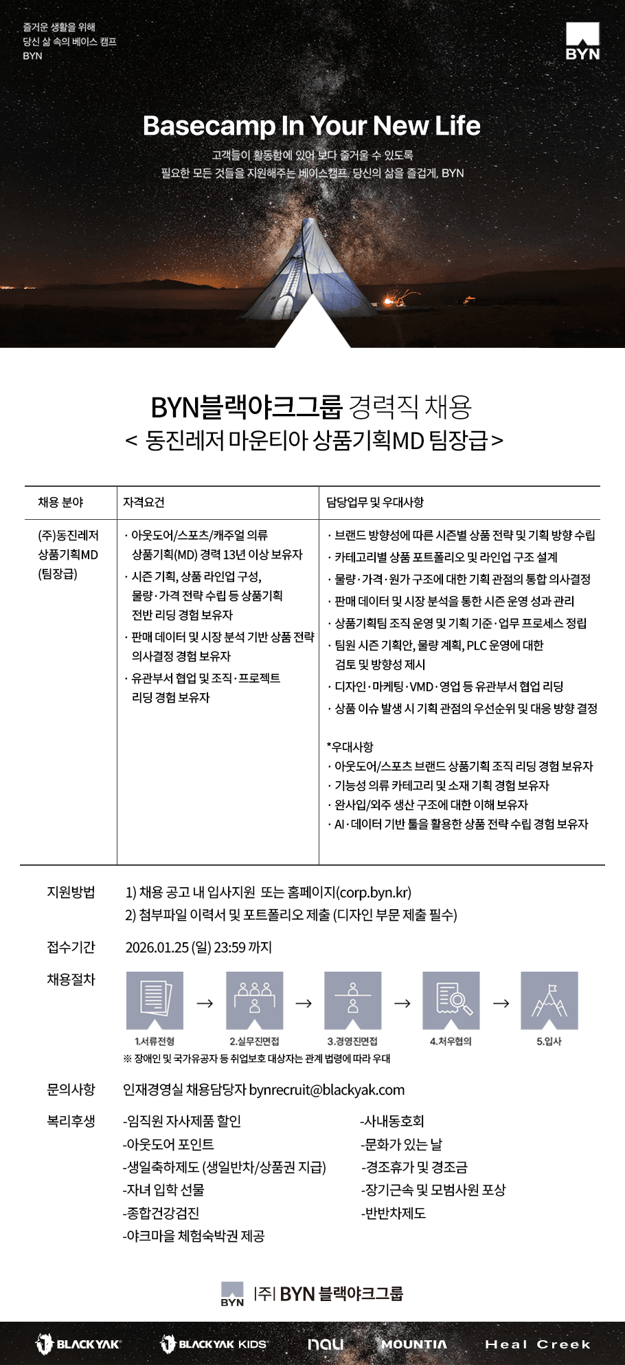 [동진레저] 마운티아 상품기획 부문 경력직(팀장급) 채용(1/9(금)~1/25(일))